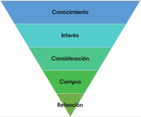 Estas aspiraciones de crecimiento suelen ser modeladas con el clásico embudo de mercadotecnia. Empezamos con un conocimiento de marca y terminamos con lealtad o retención de estos usuarios.