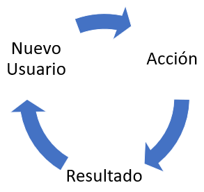 Un loop de adquisición tiene la siguientes características. Llega un nuevo usuario, este usuario hace una acción, esta acción genera una salida o un resultado y este resultado genera más usuarios.